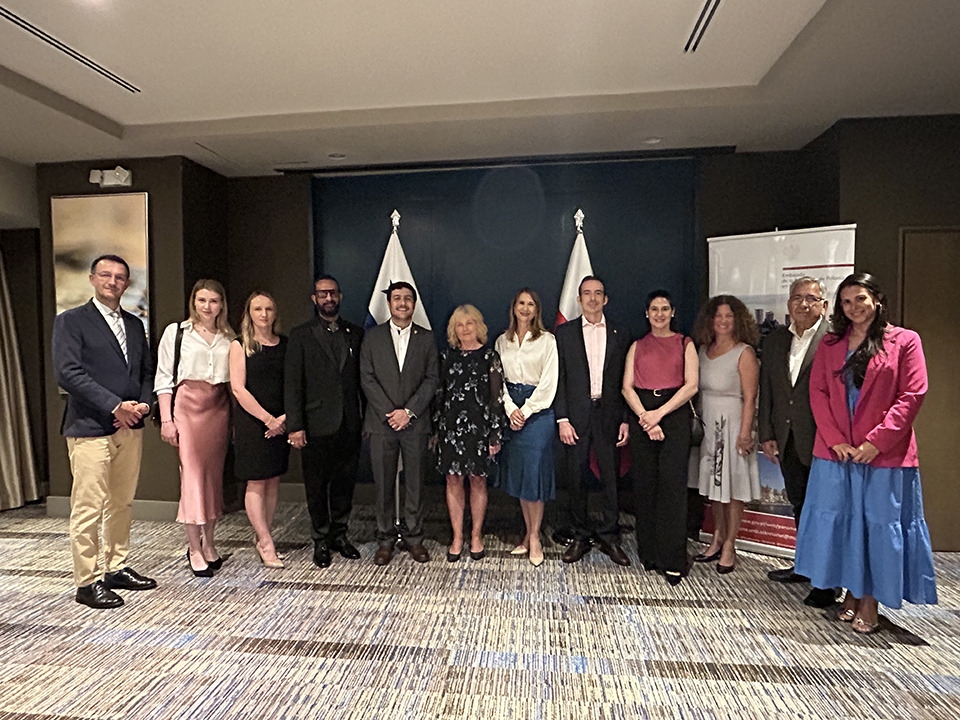 S.S. Jolanta Janek, Jefa de Misión de Polonia en Panamá; H.S. Yill Otero, Secretaria General PROPANAMA; Walter Cohen, Director General de Servicios al Inversionista MICI; Hardeep Bhullar, Director de Atracción del Gobierno de Panamá MICI; Gustavo Taft, Vicepresidente de CCIAP; José Palermo, Cónsul Honorario de Polonia en Colón; Agata Błaszczyk, Ministra Consejera de la Embajada de Polonia; Maryliana Manrique, Responsable de Asuntos Económicos y Comunicación de la Embajada de Polonia; Anna Dobrzycka; Jefa de la Agencia de Inversión y Comercio Polaca -PAIH; Anna Markowski, Agencia de Inversión y Comercio Polaca -PAIH, Lukasz Zablonski, Agencia de Inversión y Comercio Polaca -PAIH